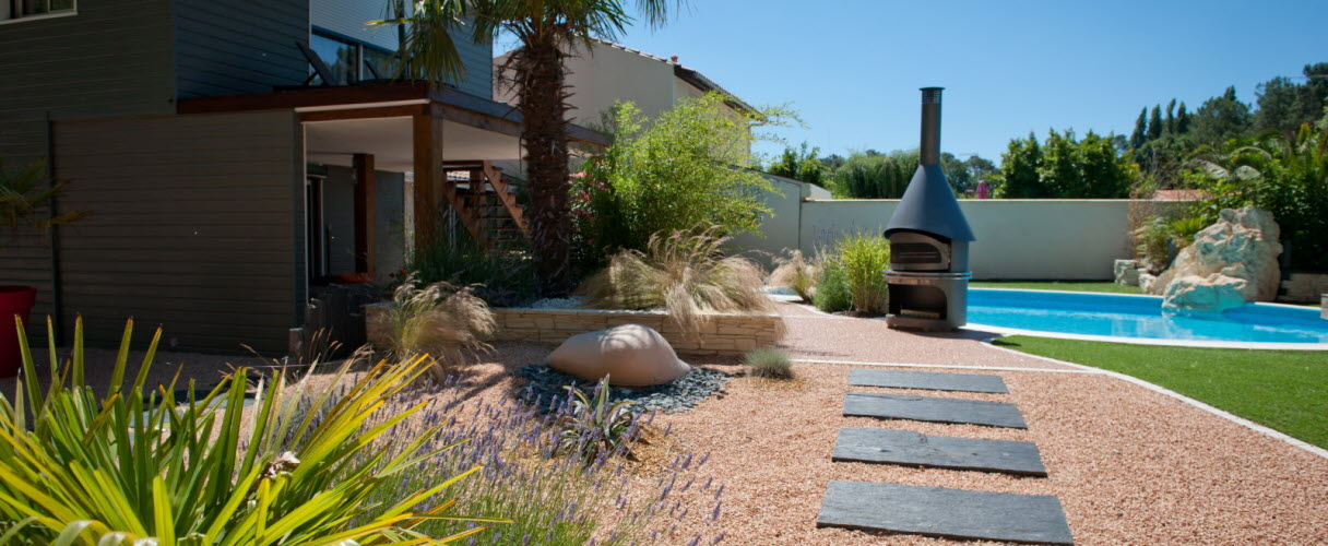 On pourra tout d’abord se tourner vers des matériaux libres comme le gravier ou les gravillons, qui représentent une option de charme et demandent peu d’entretien. Pas de balayage ni de lavage à prévoir : il faut cependant y passer régulièrement le râteau afin de supprimer les fleurs ou les feuilles mortes ainsi que les graines de mauvaises herbes prêtes à germer. Toutefois, la pose d’un gravier demande une bonne préparation du sol. Il faudra ainsi le débarrasser des racines de mauvaises herbes les plus tenaces et bien tasser. Avant de poser un voile géotextile qui ralentit durablement l’apparition de nouvelles mauvaises herbes, puis le gravier. L’installation de bordures solides est aussi recommandée, afin de limiter les risques d'éparpillement du gravier.