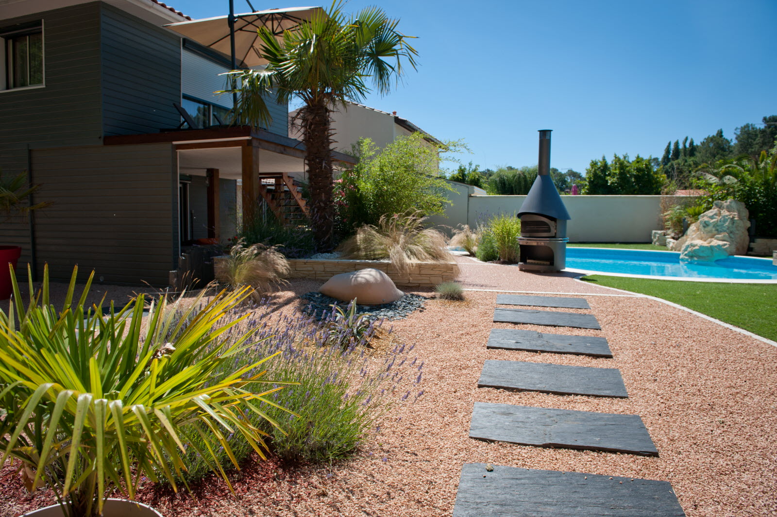 Un gravier se distingue par sa couleur et par son calibre. Plus il est fin, plus il est confortable. On pourra ainsi opter pour des gravillons de marbre rose, du calcaire blanc plus lumineux, du gris à l’aspect plus urbain, du jaune pour une note chaleureuse. Mais bien d’autres critères distinguent les graviers comme leur granulométrie, leur densité, la nature de la pierre et leur type qui peut par exemple être roulé ou concassé. Pour une allée carrossable, la taille préconisée est 6/16 mm minimum.